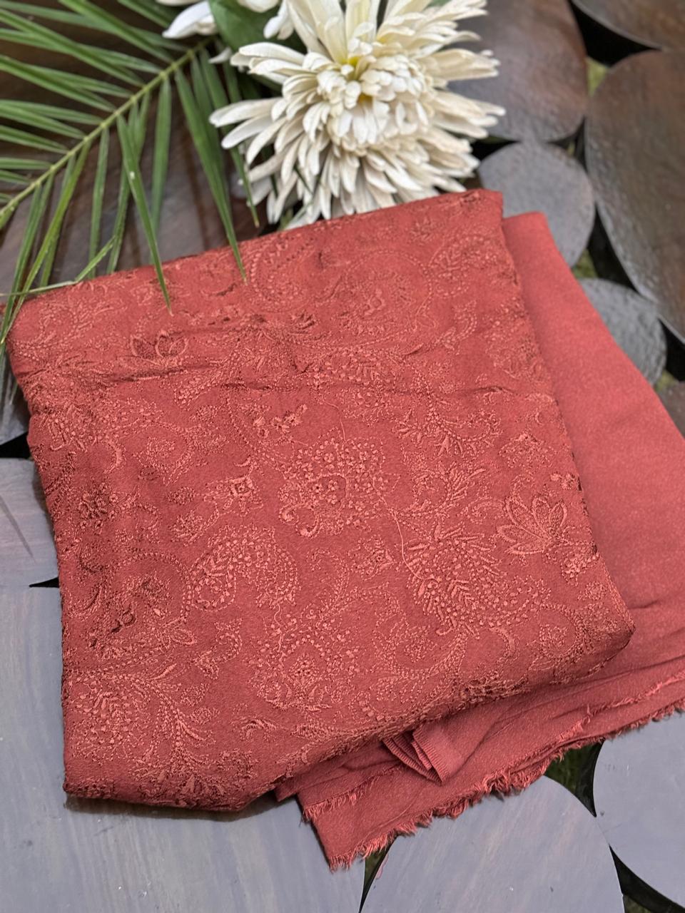Its a Khadar Winter Stuff Brown shirt & shalwar two piece unstitched suit with all over thread embroidery on full shirt & plain trouser fabric with it. Wearing Brown is not a fashion trend: its a personality. Brown brings style into a personality so in this winter add fully Brown self embroidered shade into your wardrobe & enjoy the winters in our super comfortable & warm dress.