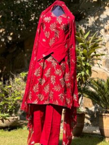Be the first to review “Charry Red with Golden thread work”