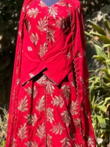 Charry Red with Golden thread work