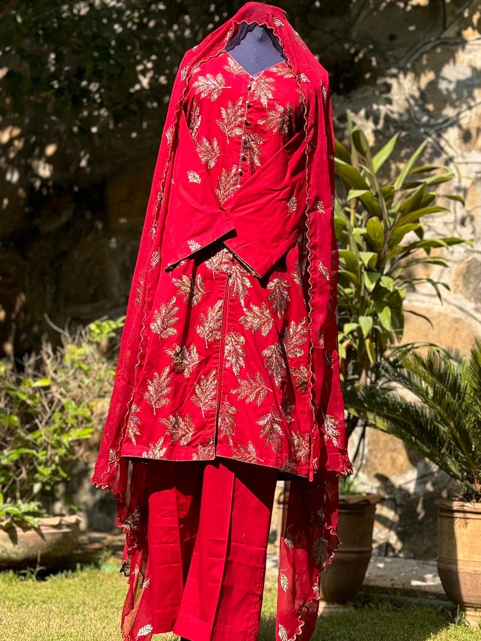 Be the first to review “Charry Red with Golden thread work”