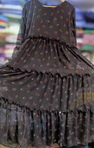 Beautiful black printed, Georgette ready to wear Classy long maxi in free size best for summer wears. Maxi is a long flowing dress that typically reaches the ankles or floor. it is popular fashion choice for women specially during the warmer months.