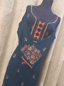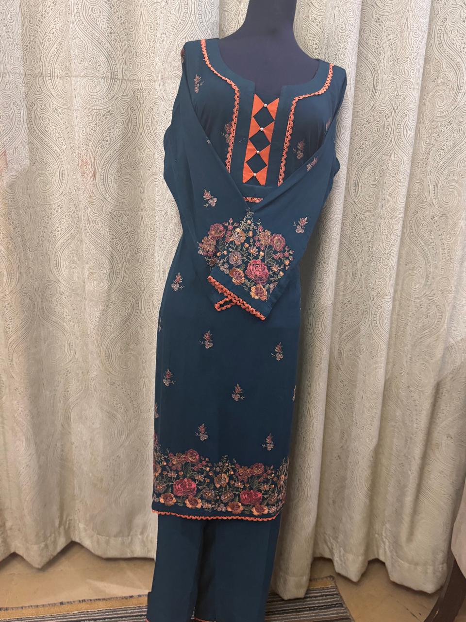 ready to wear Sea green desi style shirt & trouser with beautiful thread work on shirt.